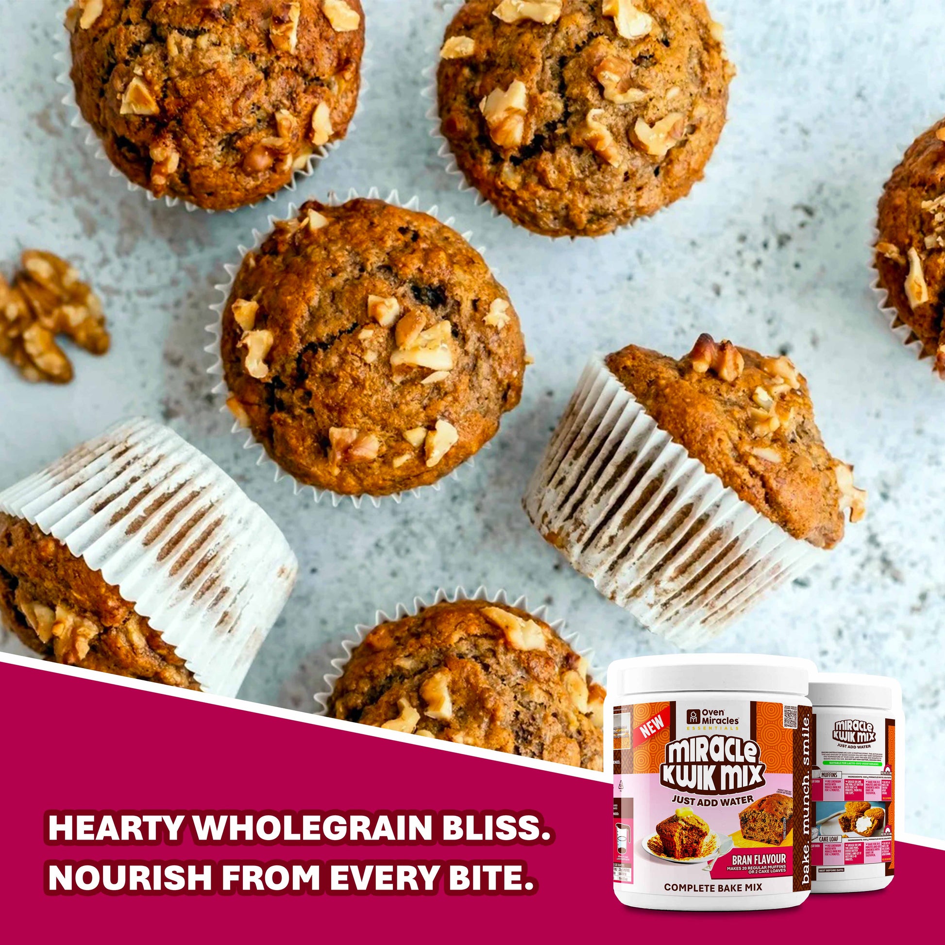 Miracle Kwik Mix Bran is nutritionally versatile and ideal for muffins or loaf cakes with healthy add-ins like pecans, raisins or mashed banana.